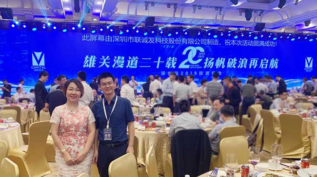 2019年8月25日,深创投2019年投资年会在深圳市华侨城洲际大酒店拉开了序幕,而米兰milan作为被投资企业及LED显示屏解决方案服务商出席此次投资年会,米兰milan200㎡的龙艺LED显示大屏幕更是为本次年会提供了极致的显示效果,优质的解决方案和产品得到了深创投的十分肯定。