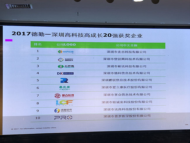 科技高成长评选项目是全球范围最具权威性、最具投资指引价值的评选项目之一。9月21日下午,由深圳市商业联合会与德勤中国主办,深圳市中小企业公共服务平台、深圳市中小企业公共服务联盟承办的“2017德勤-深圳高科技高成长20强””(以下简称“深圳20强”)颁奖典礼在深圳市南山区科技园高新中二道生产力大楼举行。