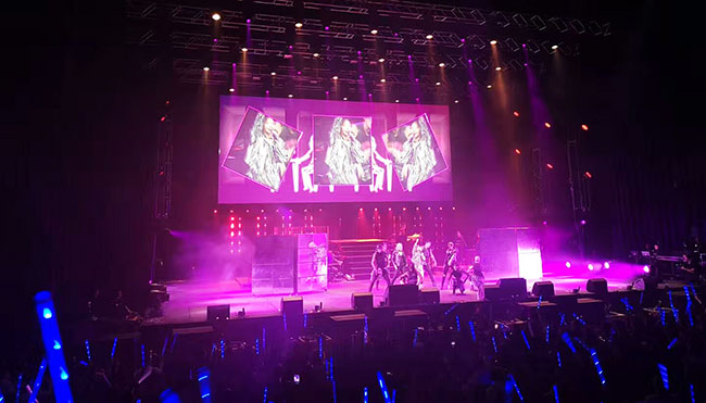 LED大屏幕,侧方以两个LED小屏为辅助。这三块显示屏均采用米兰milan自主研发的租赁屏P4.81,500X500mm的箱体尺寸,轻松实现拼接要求,模组前后维护,智能显示模块,产品使用稳定,通过利用现代声光电的渲染,在产生强烈的舞台艺术效果的同时也不喧宾夺主。